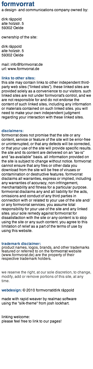© 2009 - 2012 formvorrat/dirk räppold contact